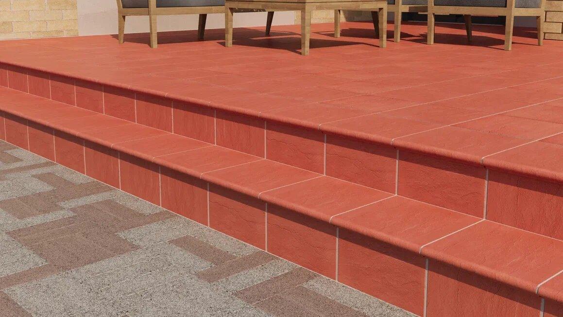 Гладкая натуральная фактура без выраженного рельефа подчеркивает глубину и естественность цветов: Вишня, Шоколад, Дюна, Пальмира. Благодаря высокой прочности и морозостойкости ступени отлично подходят для любых климатических условий, включая резкие перепады температур.